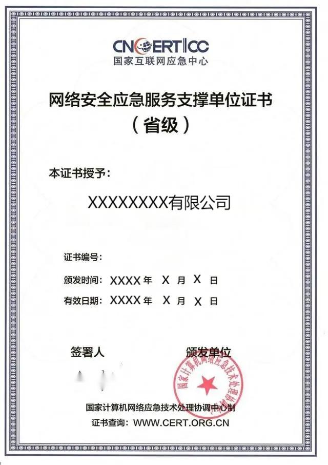 由国家计算机网络应急技术处理协调中心颁发
